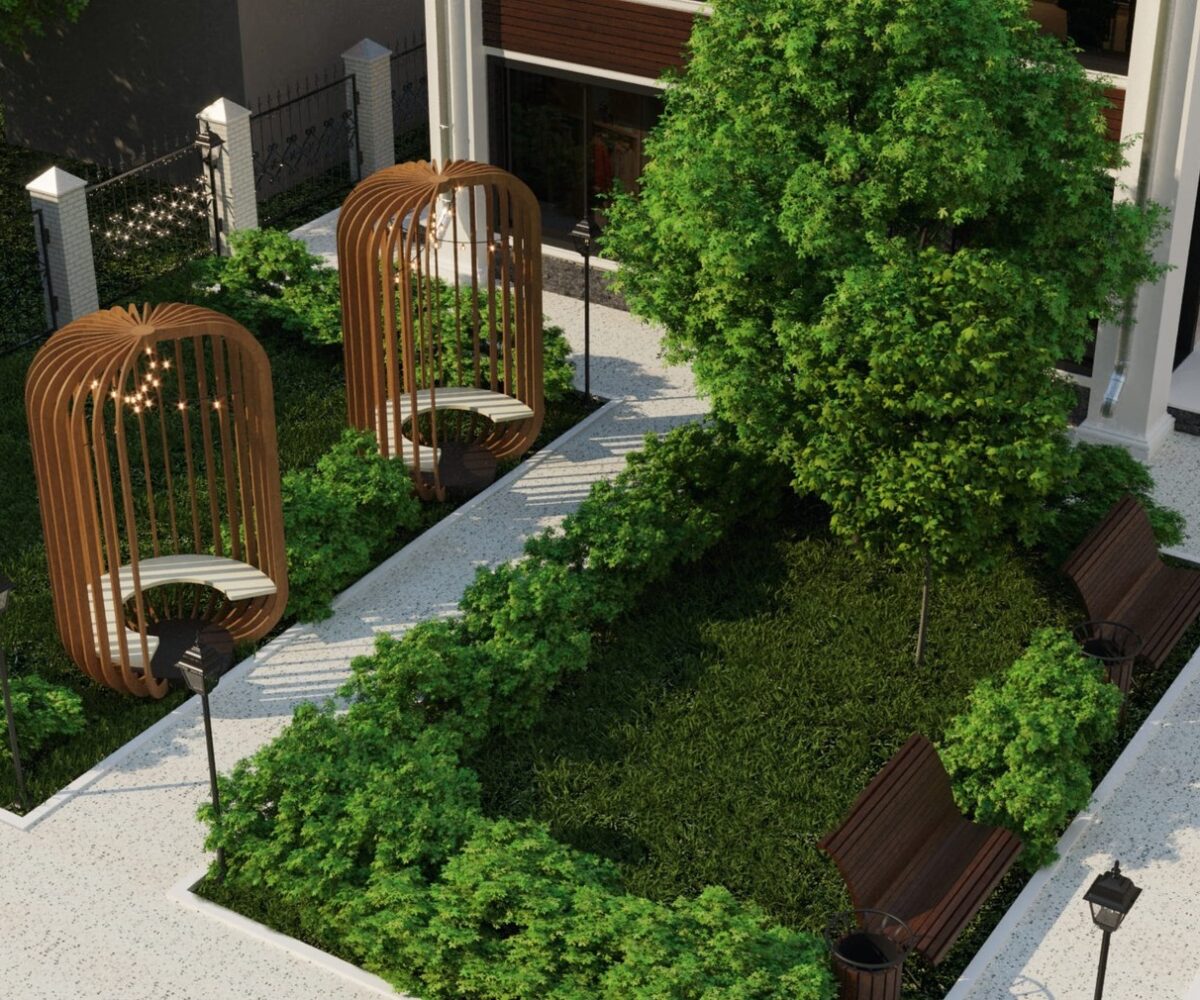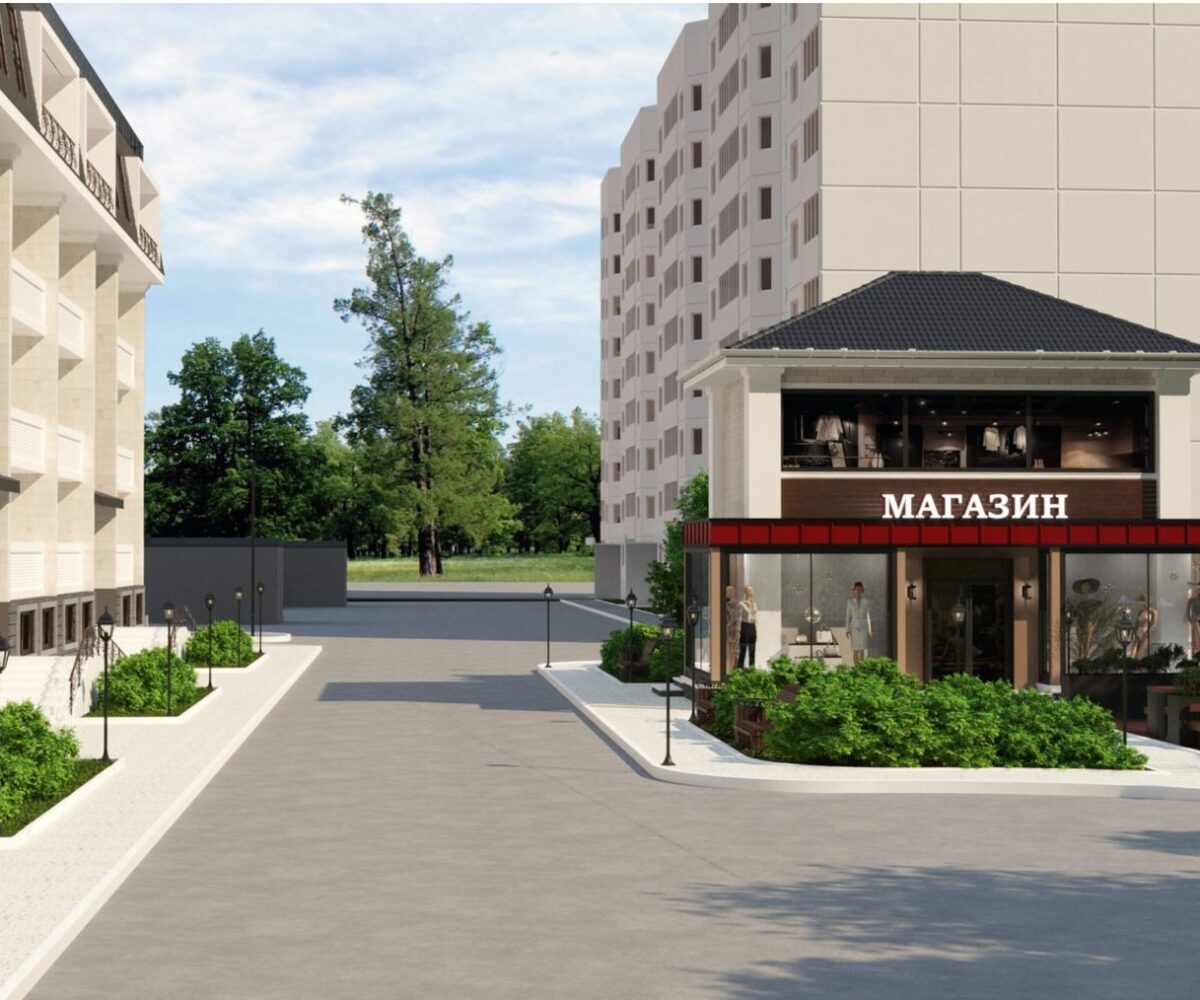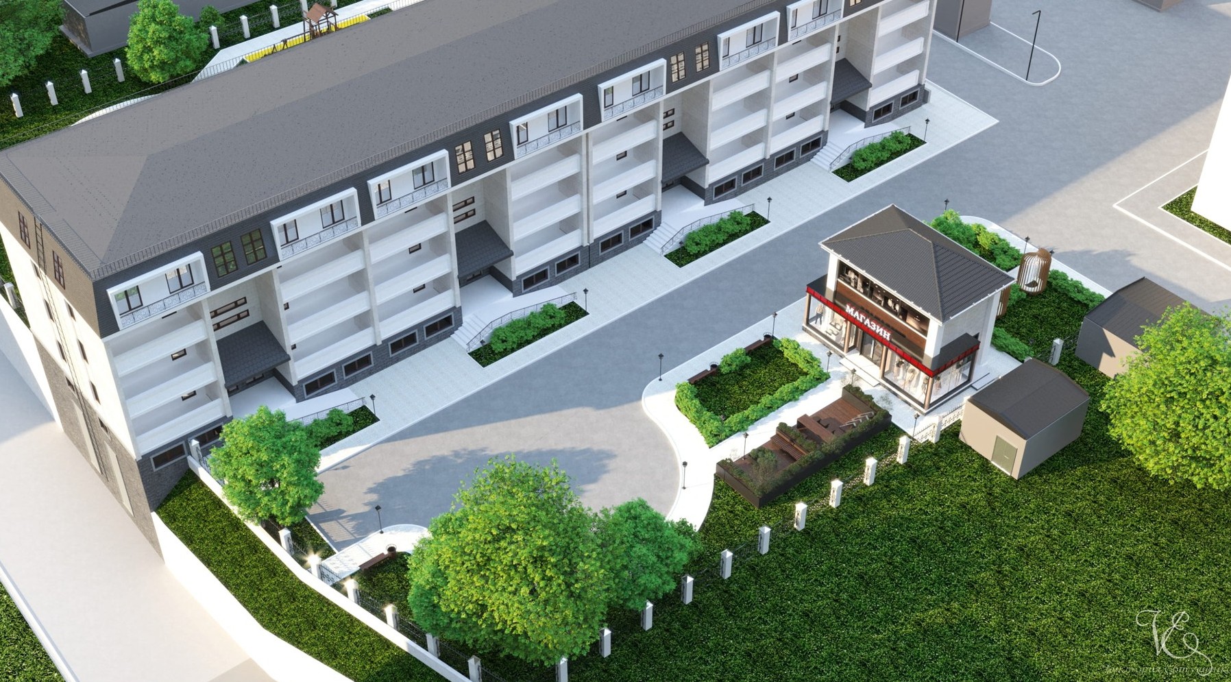 The total area is 3,100 sq.m, of which around 20% is designated as green space. The underground parking spaces are currently in the design stage. A security checkpoint will be available. Commercial areas are located on the 1st and 2nd floors. Completion of construction is expected by the end of 2025.