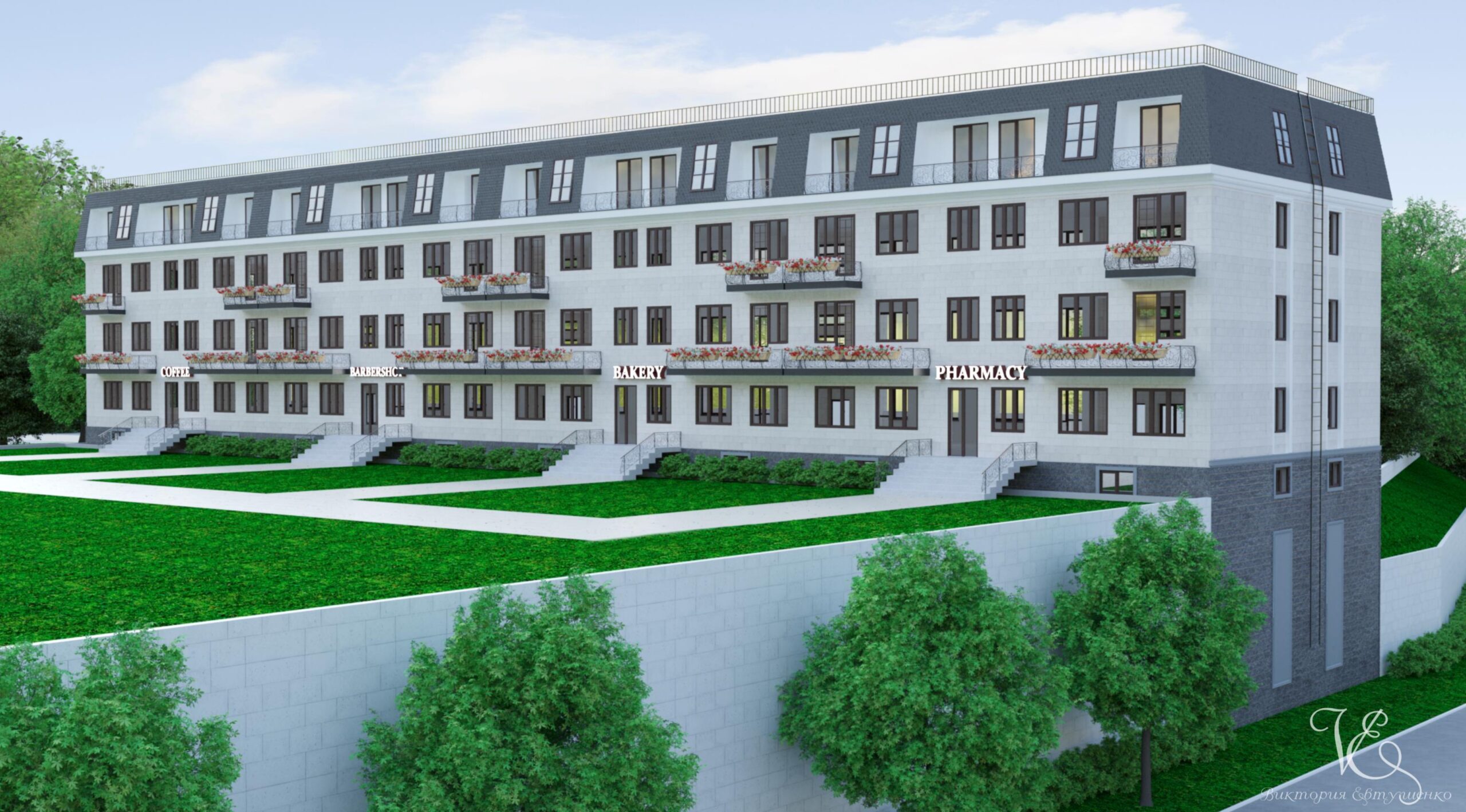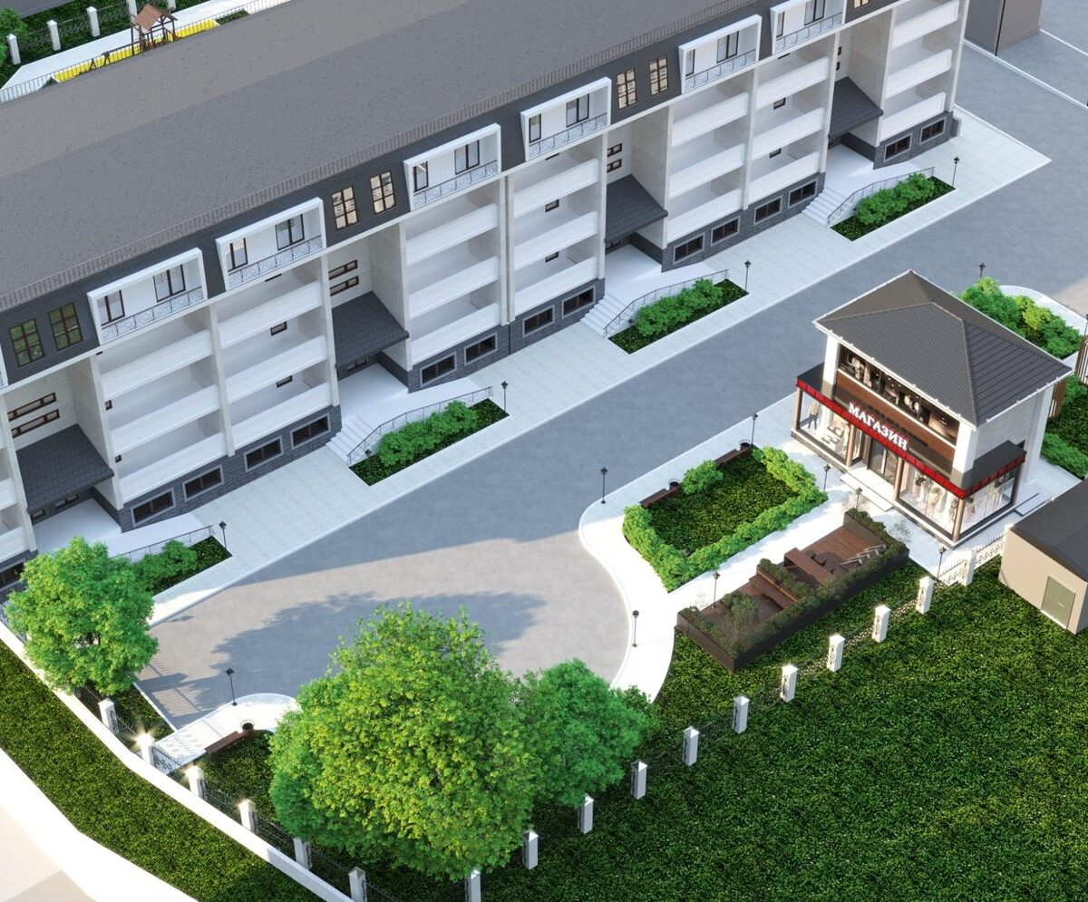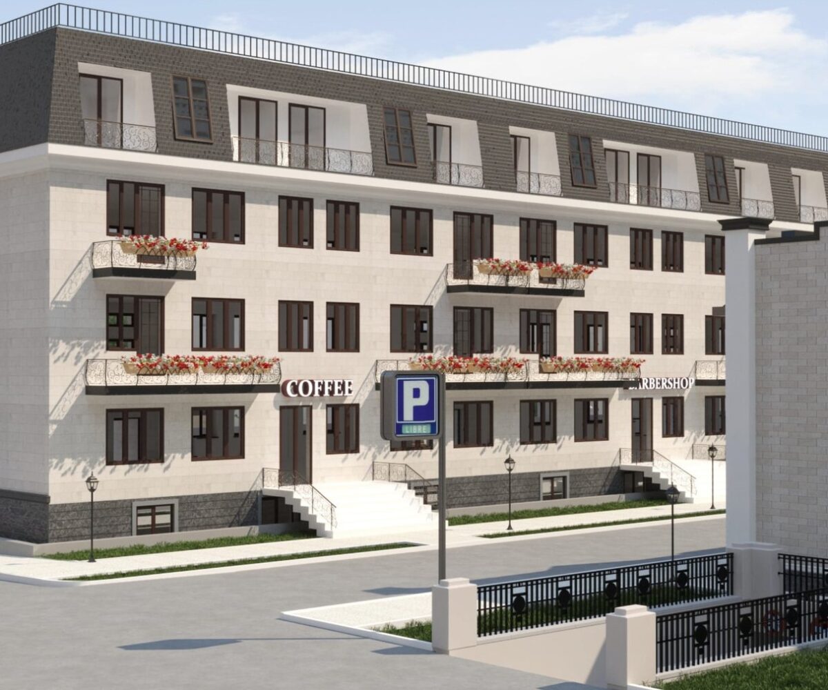 The total area is 3,100 sq.m, of which around 20% is designated as green space. The underground parking spaces are currently in the design stage. A security checkpoint will be available. Commercial areas are located on the 1st and 2nd floors. Completion of construction is expected by the end of 2025.