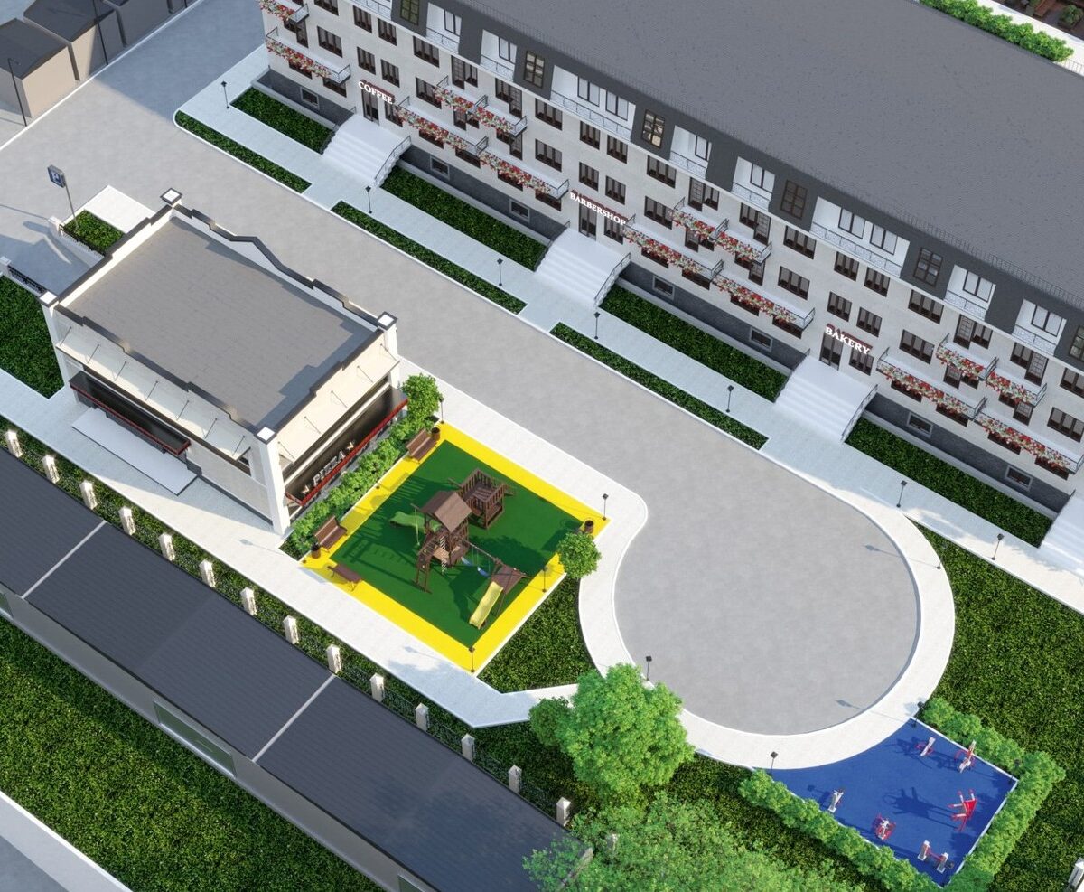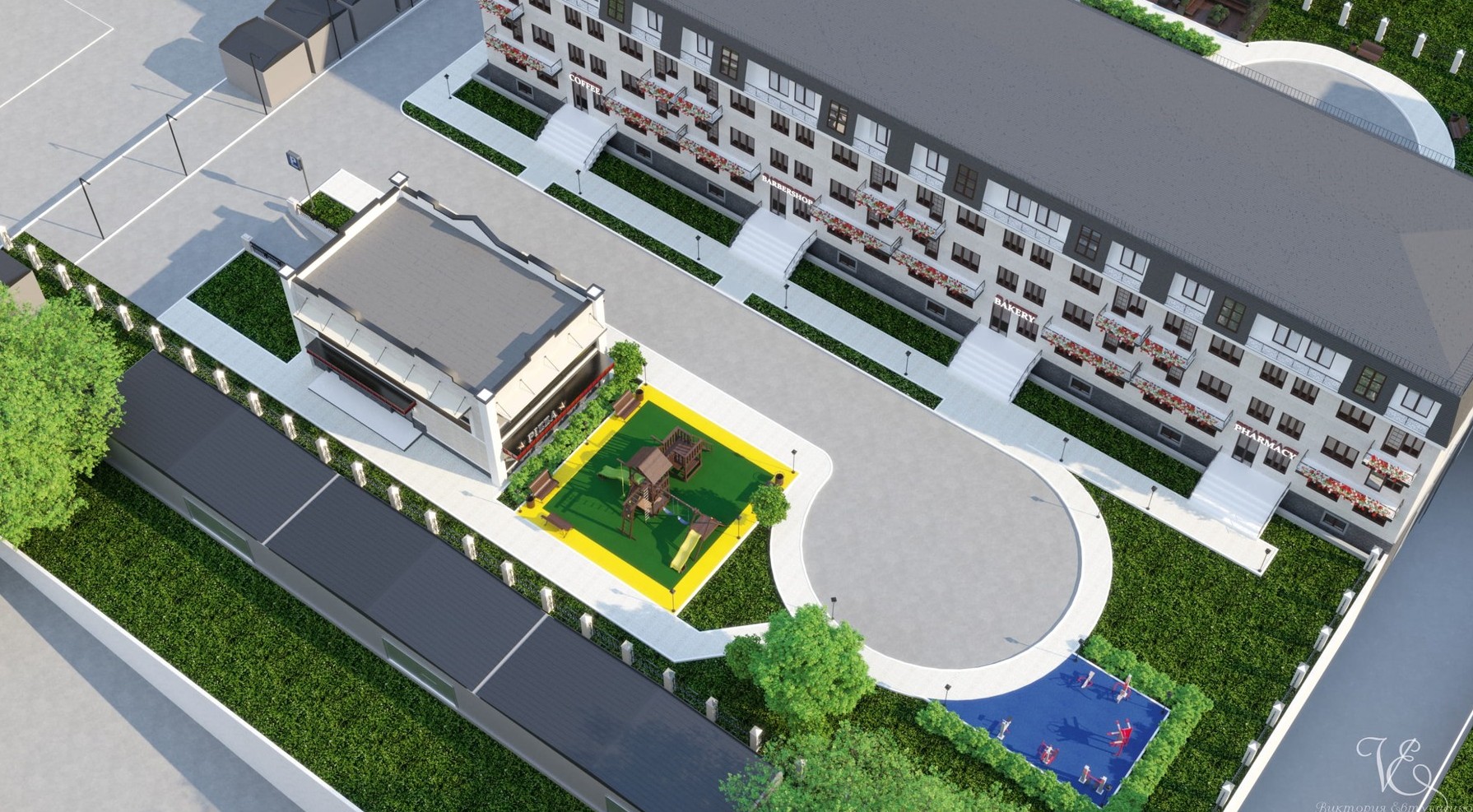 - Landscaped courtyards with closed and open recreation areas exclusively for residents